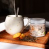 An enchanting duo, as if coming out of a magical universe. It brings together an elegant porcelain mug, with soft lines and dotted with sparkling stars, and an organic white tea with delicate almond notes and the fruity vivacity of the raspberry.