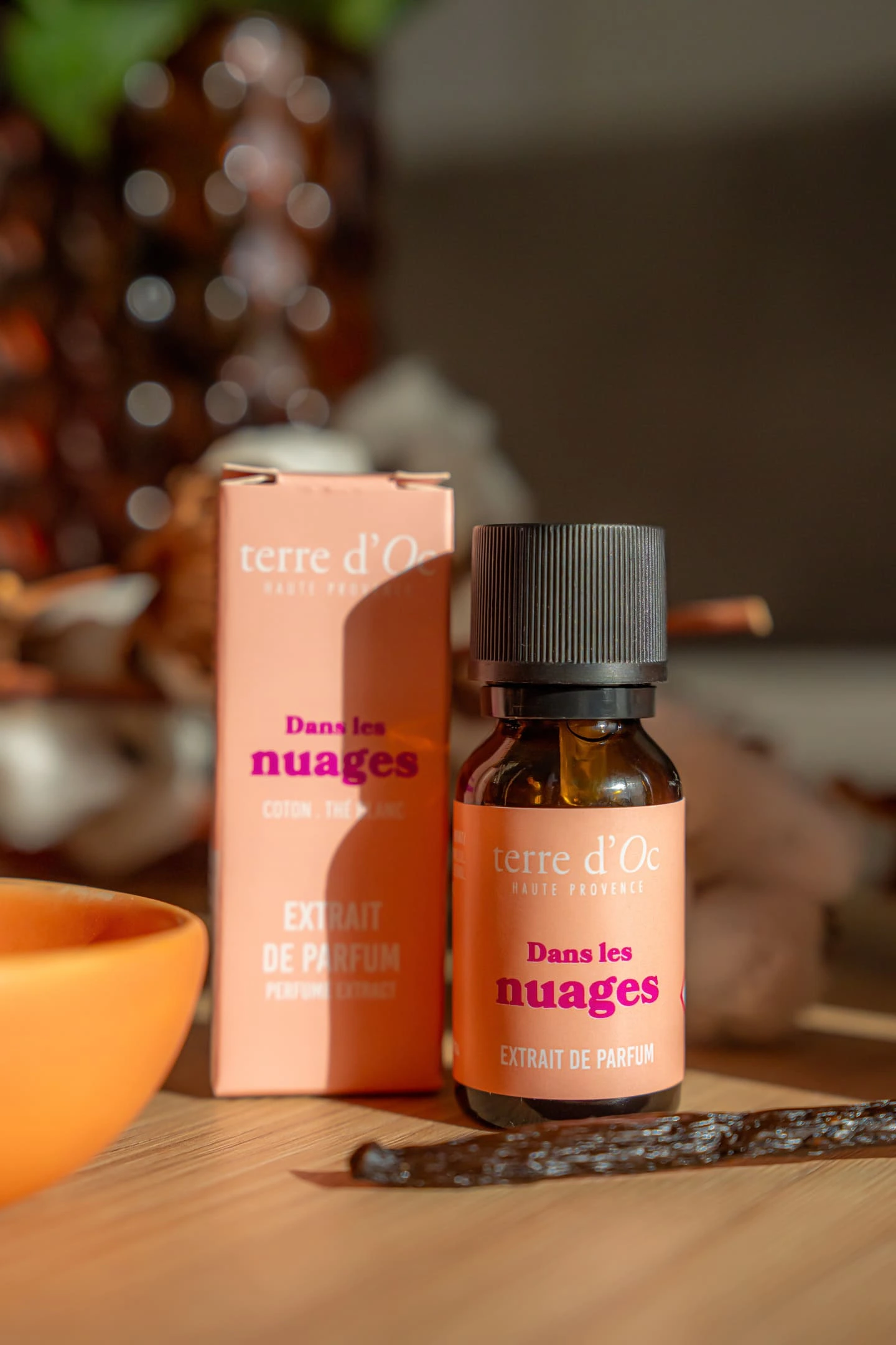 The scent in the clouds, in a concentrated perfume extract version. A few drops are enough to intensely perfume your interior: sweet and airy notes of tea and apricot, softened by a cotton accord, on a soft and comforting background mixing sandalwood, cedar, musk and vanilla.