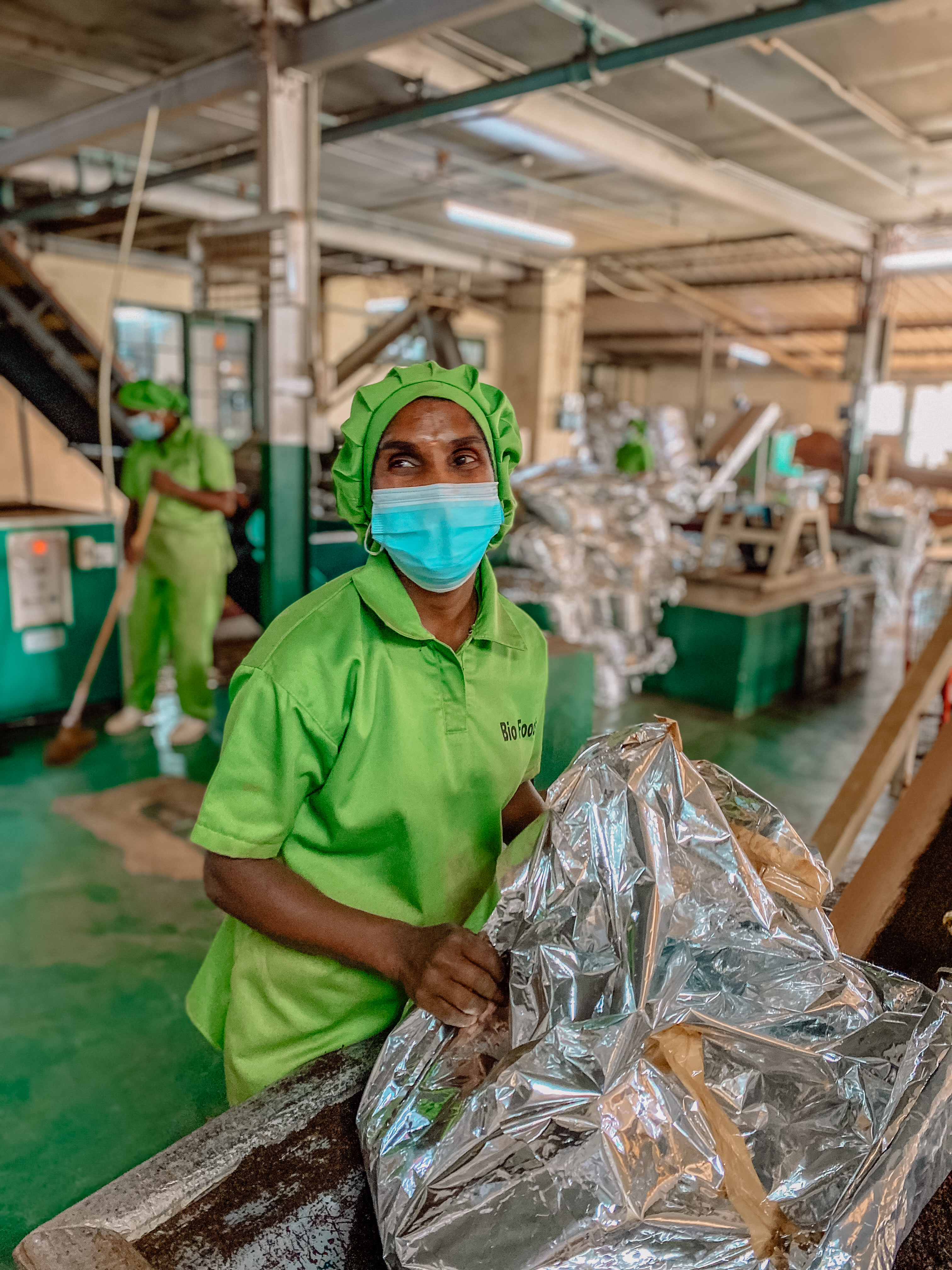 Une plantation de thé peut durer jusqu’à 80 ans, elle est ensuite arrachée et replantée. En général, une grande taille est effectuée tous les 5 ans pour faire repousser les arbres et les maintenir à taille humaine pour la cueillette. J’ai également visité une des usines de transformation d’épices de notre partenaire. Elle emploie 115 salariés et produit pas moins de 27 types d’épices : poivre blanc, poivre noir, curcuma, gingembre, muscade, clou de girofle, feuilles de curry, citronnelle, chili, coriandre, cumin, fenouil ou encore la magnifique cannelle. La production d’épices a lieu en général d’avril à juin et c’est près de 5000 tonnes qui sortent tous les mois.