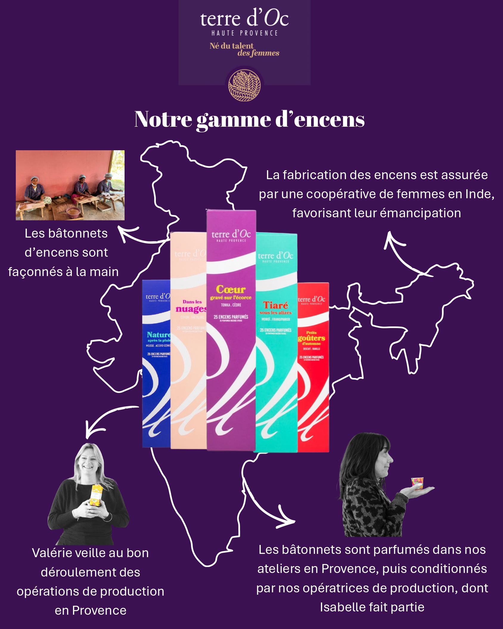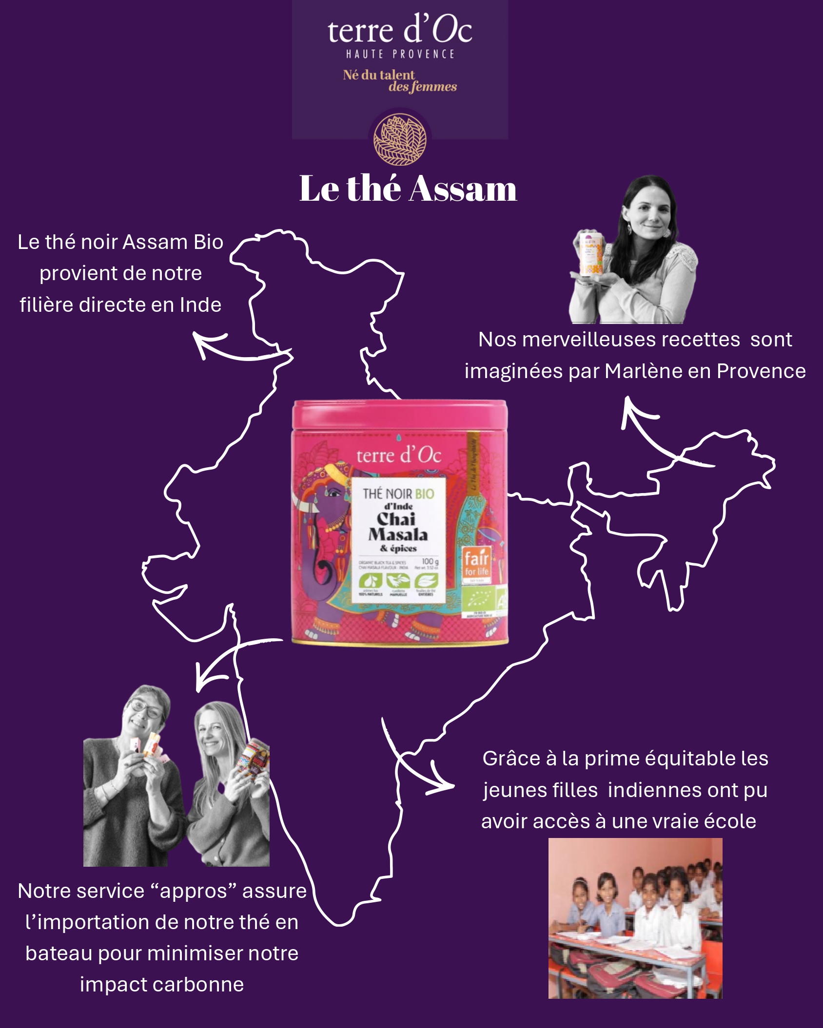 Pour illustrer cet engagement, nous avons choisi de mettre en lumière notre filière d’argan au Maroc avec l’huile de soin “Nerolina”, nos encens parfumés d’Inde, ainsi que notre thé Assam en Inde, à travers notre thé noir bio Chai Masala & épices.