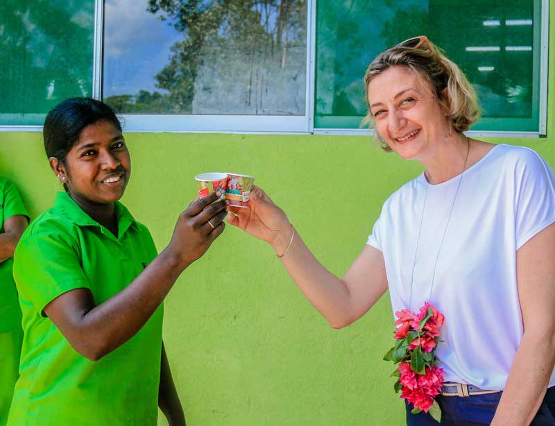 Nous pourrions nous contenter d’envoyer un questionnaire, de commander un audit « fournisseur » à un consultant indépendant, de prendre connaissance des conclusions et de valider. Ce serait passer à côté de ce qui fait l’essence de notre travail et de nos thés : la richesse de la rencontre, un échange de sourire, une conversation avec les femmes sur leur travail et sur leur vie dénuée de superflu.