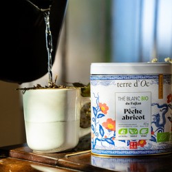 Ingrédients : thé blanc Bai Mu Dan* (Chine) 80%, arôme naturel*, arôme naturel de pêche avec autres arômes naturels*. *Ingrédient issu de l’agriculture biologique.