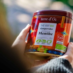 Agrémenté de beaucoup de feuilles de menthe, ce thé vert au gout vif, végétal et frais, se déguste très chaud pour ses bienfaits désaltérants et digestifs.